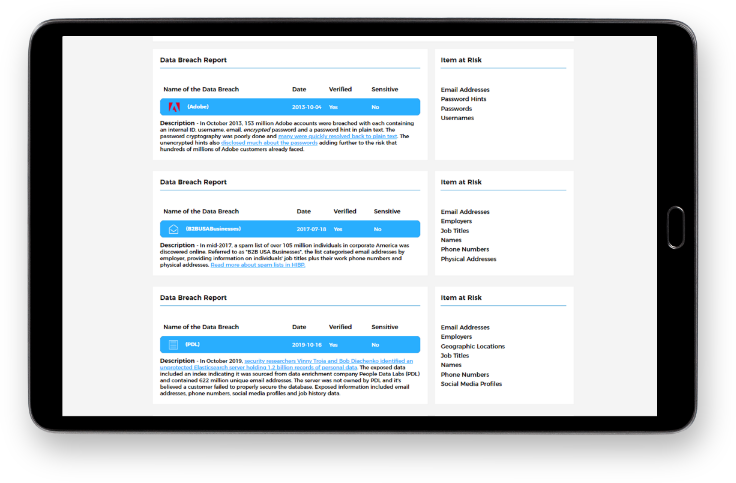 We gain access to stolen information by interacting with criminals on private forums inaccessible to the general public, where data thieves trade or sell their information. Our breach detection resources can help discover if your information was or is currently being offered underground, so you can quickly address the situation.